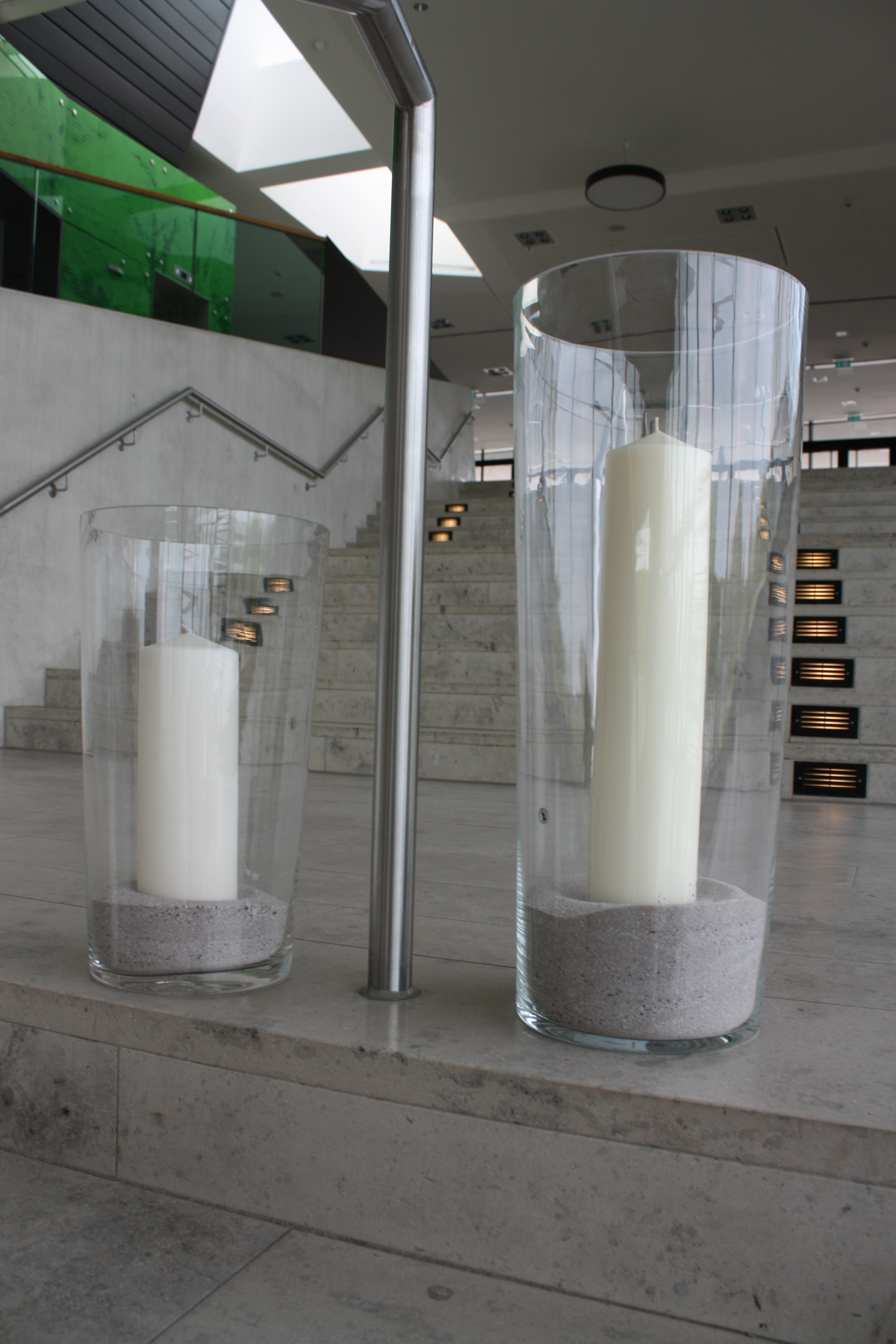 Windlicht Gläser mit Stumpenkerze und Dekosand