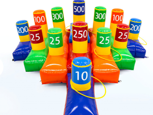 Ein Klassiker, der immer für Begeisterung sorgt! Das aufblasbare Ringwurfspiel ist ein Highlight für Groß und Klein – perfekt für Wettkämpfe, Schulveranstaltungen und Feste. Wer sammelt die meisten Punkte?